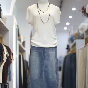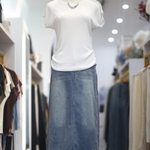 Set Áo Sơ Mi Đen Cổ Bẻ & Chân Váy Jean Dài Thanh Lịch