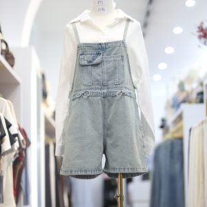 Yếm Jeans Lửng Phối Áo Sơ Mi Trắng