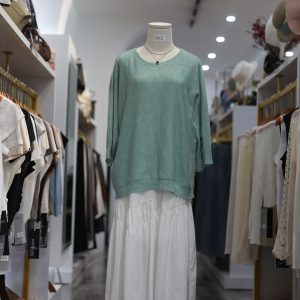 Set Bộ Áo Len Xanh Mint Chân Váy Linen Trắng Tầng