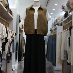 Set Bộ Áo Gile Phao Nâu Chân Váy Đen