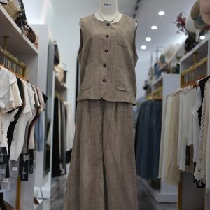 Set Bộ Linen Áo Gile Quần Ống Rộng Phong Cách Vintage
