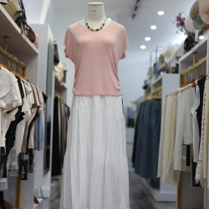 Set Bộ Áo Thun Hồng Chân Váy Linen Tầng