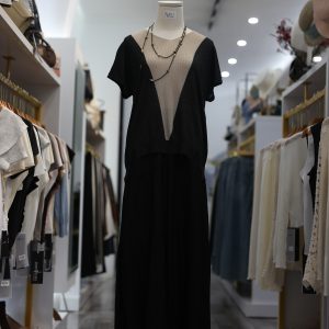 Set Áo Sơ Mi Đen Cổ Bẻ & Chân Váy Jean Dài Thanh Lịch