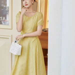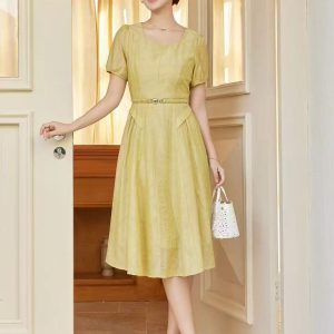 Chiều dài váy qua gối, phù hợp với nhiều hoàn cảnh.