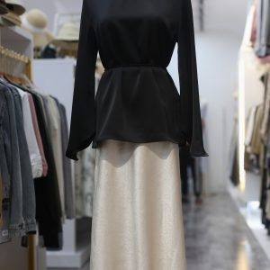 Set Áo Lụa Nâu(Đen) & Chân Váy Lụa Trắng Ngà