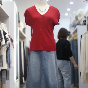 Set Áo Len Cài Nút & Chân Váy Denim Dài